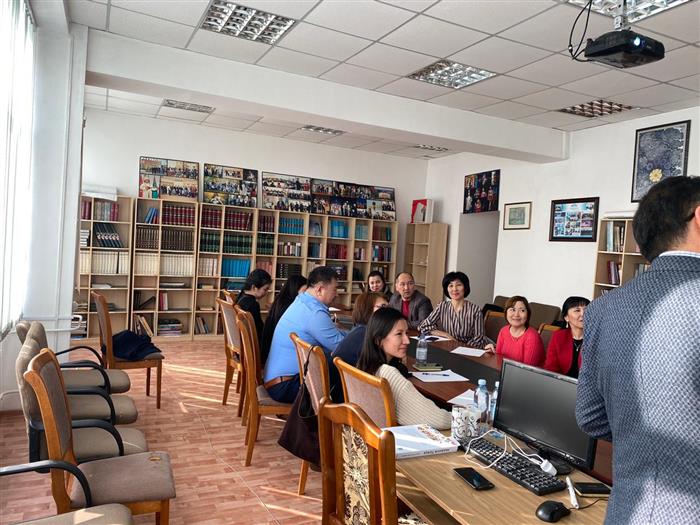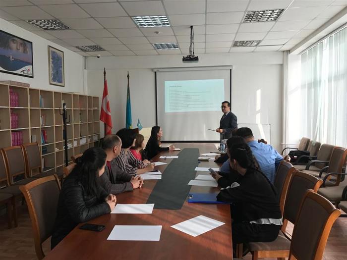 One of them were master classes from Nurettin Chakir and Selenay Baloglu, teachers of Türksoy department. Nurettin Chakir talked on the topic “Using the suffixes of Turkish culture in the academic teaching of the Oriental language” (Academic Türkçe öğretiminde Türk Kültür öğelerinin kullanımı). The master class of Mr. Demir talked with his colleagues on how to pass the Turkish language at a high level (level C1-C2), set goals and establish an individual orientation for each student. In the master class, the head of the department Turksoy U. Kydyrbaeva, candidate of philological sciences, associate professor Z. Shadkam, prof. Alzhanbaeva U., senior teachers and undergraduates of the department.