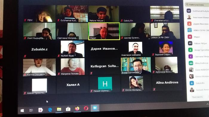 The online meeting was opened by the Dean of the Faculty Ph.D Ykhtiyar Paltore, who expressed his gratitude to the participating scientists from Yakutia. Director of the Institute, Candidate of Philology, Associate Professor Gavril Torotoev told about academician M.K. Ammosov, and also shared plans for the development of education and science between the two universities. Head of the Department of "Yakut language", Ph.D. Dariya Chirkoeva briefly spoke about the history and modern achievements of the Yakut language. At the meeting, Doctor of Philosophy, Professor Svetlana Prokopyeva showed special interest in the double-degree education program and expressed the hope that this goal will be achieved in the near future. Head of the Department of Turksoy, Ph.D Umit Kydyrbaeva answered the questions of Yakut scientists and declared her readiness for cooperation. The teaching staff of the Institute of Languages and Culture Matrena Popova, Evdokia Sofronovna, Lyudmila Efimova, Anastasia Shamaeva were also glad to meet with the scientists of the Department of Turksoy and expressed confidence in joint work in the future. At the end of the meeting, the Dean of the Faculty Ph.D Ykhtiyar Paltore expressed support for the proposals and thanked all the participants for the meeting.