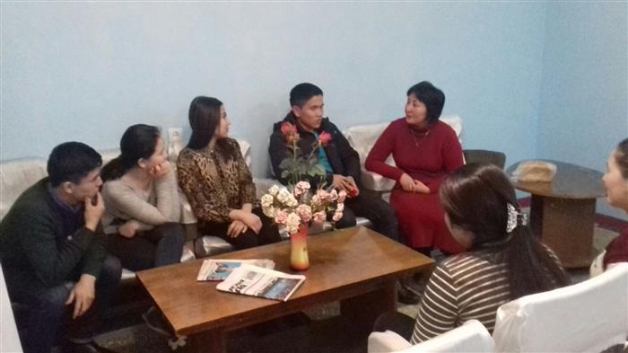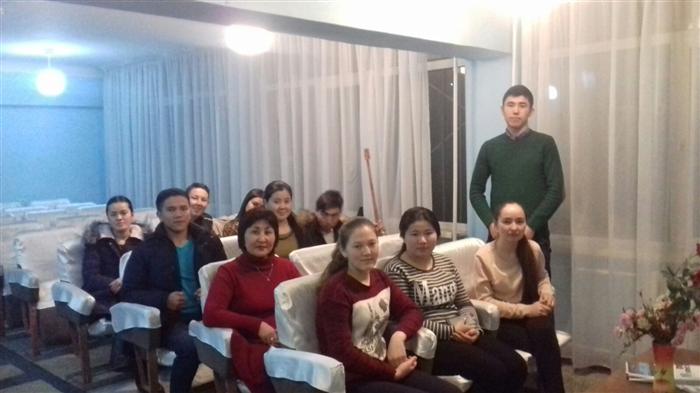 Professor, Department of blowing Zhunusova Zh.Kh. within the framework of the project "100 books" with students of 1 course of the specialty "VTiPO" Kazakh branch and 2 courses of the specialty "Mathematics" group of MM-14-2A, B in a hostel number 6, 02/06/2016, at 19.00ch. He held a round table on the theme "Abai zholyndaғy Analar beynesі", based on the novel-epic M.Әuezova "Abay Zholy".