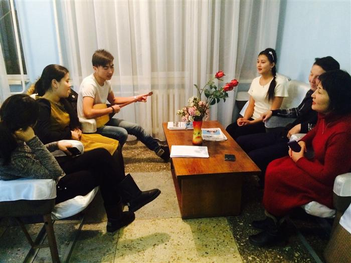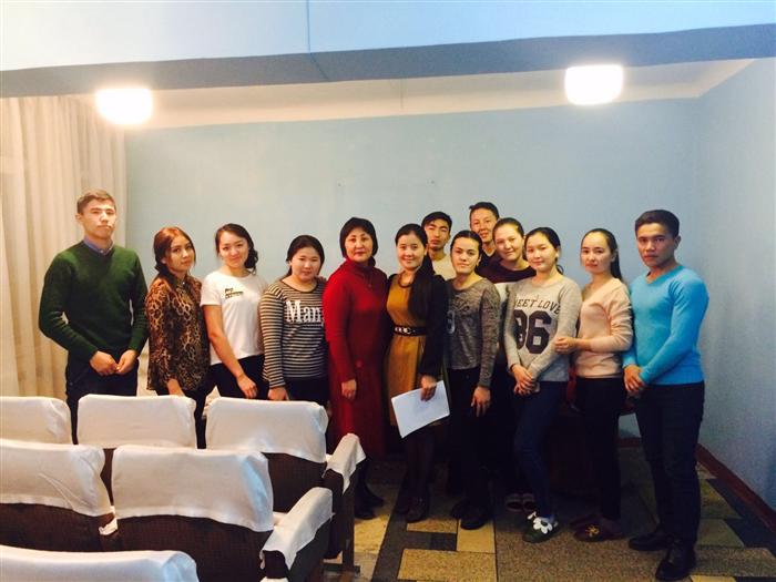 Professor, Department of blowing Zhunusova Zh.Kh. within the framework of the project "100 books" with the students of 2nd year specialty "Mathematics" group of MM-14-2A, B in a hostel number 6, 02/06/2016, at 20.00ch. lyrical evening spent on "Senі aңsaymyn Tugan el", devoted to the work Mukagali Makatayev.