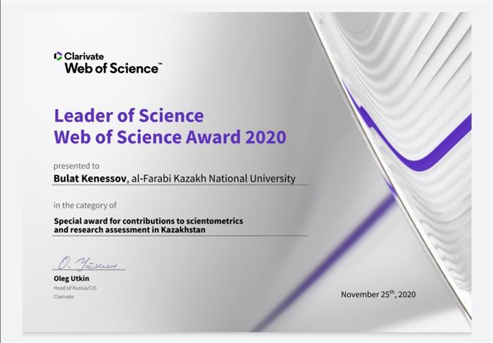 Congratulations to the professor of the Department Kenesov Bulat with the award "Leader of Science" in the event "Web of Science Award 2020"! Good luck!
