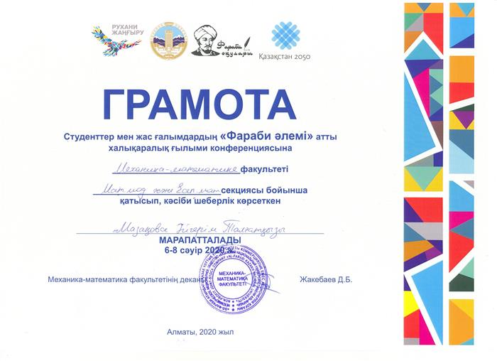 In the period of April 6-8, at the Faculty of Mechanics and Mathematics, the international scientific conference of students and young scientists "Farabi Alemi" was held online.