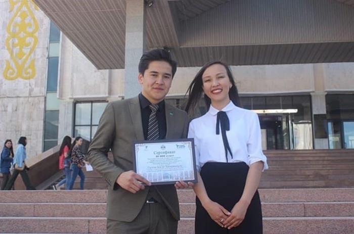 For excellent studies and active participation in the social life of the faculty, the 2nd year student of the specialty MCM Sultan Bekzat was awarded a certificate from the student organization Sunkar.