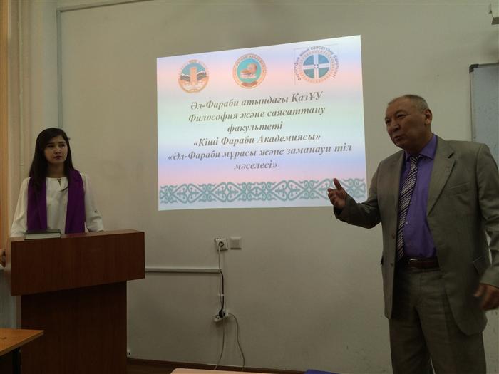 September 22, 2016 was held this year's first meeting of the Small Farabi Academy, which was dedicated to the Day of Languages. Academy members had discussed together with the professors of the department Nurysheva G.Zh., L.Askar , P.M.Suleymenov and discussed about al-Farabi’s philosophy of language.