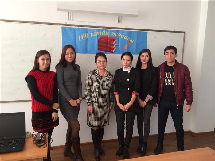 November 14, 2016 year the head of Philosophy Department G. Zh. Nurysheva and assistant of Department Dzhalmagambetova S. M. in the framework of the project "100 books" with students of 3-rd course on specialty "Philosophy" discussed the work of al-Farabi "Treatise on the views of the virtuous city." The students made presentations on classification of cities and the head of the virtuous city, as set out in this work of the great Turkic thinker, shared his thoughts about the importance of philosophy al-Farabi to modern times.