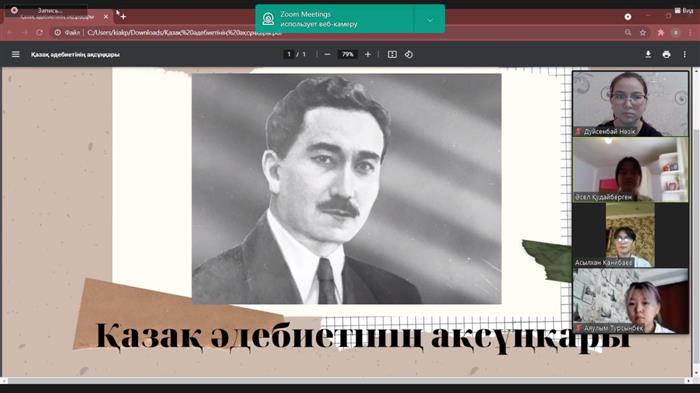 On April 8, 2021, senior lecturer of the Department of Foreign Languages of the Faculty of Philology of KazNU, Kairakbayeva Gulnaz Soltangazinovna held an online meeting with students, on the theme " Saken’s lifepath " . Saken Seifullin is an famous writer, poet, prominent statesman, one of the founders of Kazakh literature. The students showed videos and slideshows about Saken Seifullin ‘s life and work .