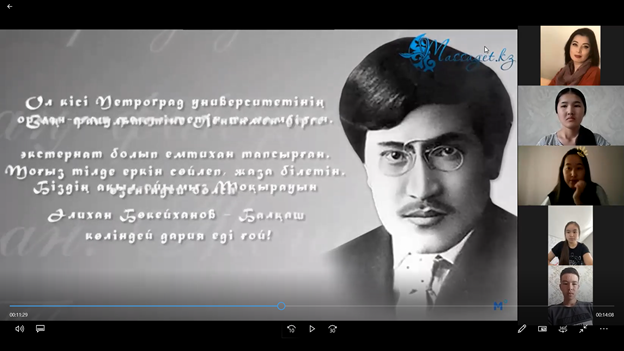 The online event was attended by 1st year students of the Faculty of Mechanical Mathematics. The purpose of the event: to educate the younger generation in the knowledge of the winged expressions and works of Alikhan Bukeikhanov. Students took an active part in the online event dedicated to the 155th anniversary of Alikhan Bukeikhanov, were able to comprehend the winged words and poems of Alikhan Bukeikhanov-the organizer of the first Kazakh political party and chairman of the government of Alashorda, as well as express the educational meaning of their deep thoughts. The event achieved its goal with the interested and active participation of students, awareness of the winged expressions and works that Alikhan Bukeikhanov passed on to the current generation.