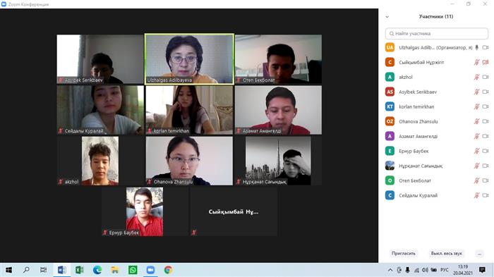 "English talking club" was opened at the beginning of the academic year on Instagram (student_of_kaznu), for everyone at the national and international students. The goal of the club is the formation of foreign language communicative competence, support and improvement of already existing knowledge and speaking skills that allow using English as a means of professional and interpersonal communication. The advisers of the club, the head of the department of foreign languages, candidate of philological sciences, associate professor Adilbayeva U.B and senior teacher of the department Gaiipova G.A organized the first meeting of the club on September 26, 2020 on the ZOOM platform.