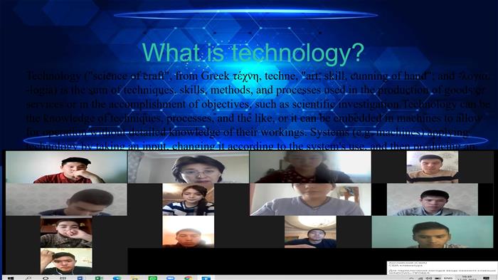 On February 20, 2021, within the framework of the English Talking Club, Candidate of Philology, Associate Professor U.B. Adilbayeva and a senior teacher G.A. Gaіipova, organized a discussion on the topic of rapidly developing technologies - informatization, online courses for students.