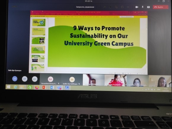 On April 12, 2021, within the framework of the project "Green Campus", senior teachers of the department of Foreign languages Akylova G.S. and Duysenbaeva Sh.S held a meeting of the "English time" club on the topic "Green Campus".
