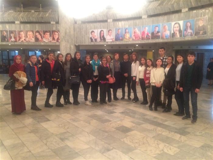 | On November 17, 2017, in the framework of the project "100 books", Turebekova R.S., Khairusheva E.E., Chekina E.B., Zhapparkulova K.N., the senior teachers of the Department of philology and world languages, visited the Youth theatre togther with the 1st year students of the faculty of Biology and Biotechnology to see the production: Man from La Manch written Miguel de Cervantis. After seeing the production the teachers held the discussion of the given theatrical production with the students in the classroom. |