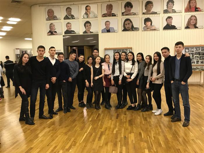 On March, 18, 2018, within the project "One Hundred Books", the evening of theatrical art was held. The senior teacher of the Department of Russian philology and world literature, R.S. Turebekova organized visited M.Yu. Lermontov theatre togther with the 1st year students of Geography and Natural management to see the play Pygmalion.