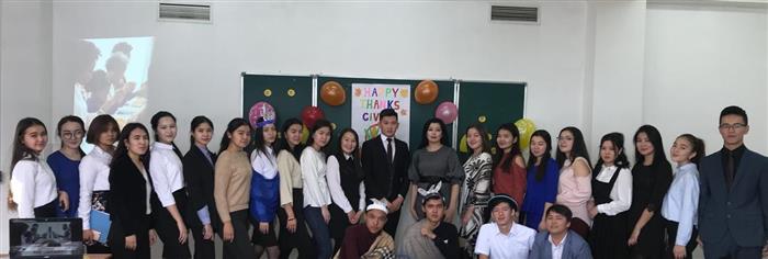 On November 22, 2018 the senior teacher of the department of foreign languages, Urazgaliyeva S.A. organized the thematic lesson on theme: «Thanksgiving day». The lesson was conducted in the group of the students of the faculty of Mechanics and Mathematics.
