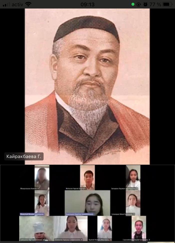On November 26, 2020, the senior teacher of the Department of Foreign Languages, Kairakbaeva Gulnaz Soltangazinovna held an educational event dedicated to the 175th anniversary of Abai Kunanbayev within the framework of the project "Ainalandy nurlandyr". The 1st year students of the speciality "Public health" participated in the event.
