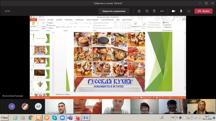 At the meeting, the students got acquainted with the names of Russian dishes, as well as with the subtleties of their preparation. Of course, each of them had certain ideas about Russian cuisine and what they eat in Russia, as well as in Kazakhstan, every day. As it turned out, in most cases, their ideas about Russian cuisine coincided with reality. The students were guided by their personal feelings and experience, as some of the girls know how to cook dumplings and borscht. Many tried pancakes, caviar, black bread, buckwheat porridge, but did not know how to cook them. The students talked about the dishes of the Turkmen cuisine that resemble or are close in taste or ingredients to Russian food. They were especially interested in learning about the etymology of the names of such familiar dishes as okroshka, dumplings and kvass.The meeting was active - the students asked questions. They were interested in the origin of the names of Russian dishes. At the end of the evening, we agreed to meet offline after quarantine to cook together and treat each other to Russian cuisine.