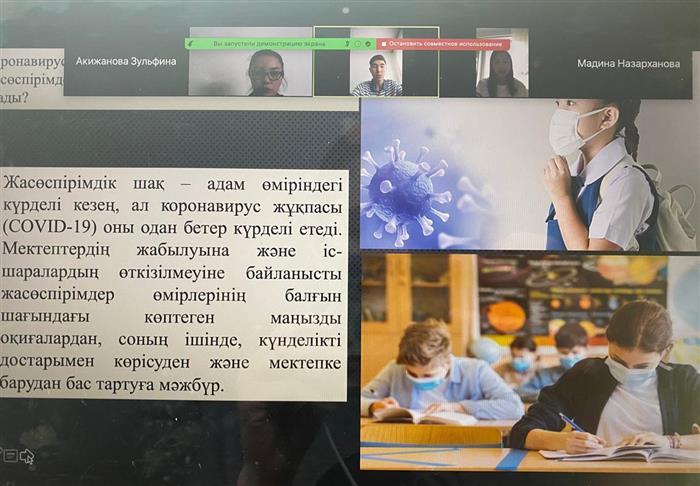 Within the framework of the project "Cult of a Healthy Body", the Faculty of Philosophy and Political Science, the Department of Religious Studies and Cultural Studies, 2nd–year undergraduates of the specialty "Cultural Studies" and senior teacher ShanbayevaArailymNurdygulovna held an educational hour of the republican level "the impact of the coronavirus pandemic (COVID-19) on the psychological health of people". During the educational hour, the issues of the impact of the pandemic on the psychological health of a person, one of the most important topics at the present time, were discussed. Students of the specialty " Cultural Studies“,” Social work“, " Tourism“,” Pedagogy and Psychology " shared their thoughts and opinions.