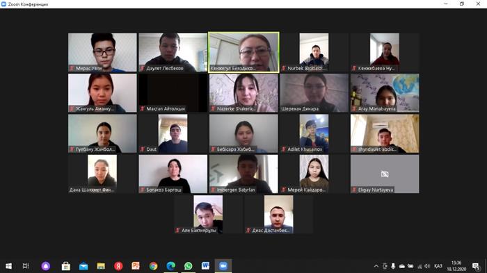 On December 18, 2020, at 13.00, Al-Farabi Kazakh National University, within the framework of the project "Ainalandy Nurlandyr", 1st-year students of the Faculty of Economics of the specialty "Finance" together with 1st-year students of S. Toraighyrov University of Pavlodar held a debate on the topic "Culture of language". At the debate, information about the culture of the language, its types and values was presented, in addition, songs were sung and the dombra was played. Students developed spiritually and consciously.
