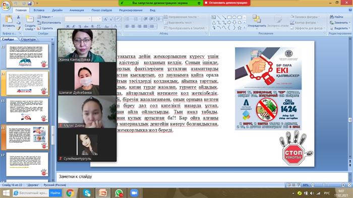 Within the framework of the project "Адалдық алаңы" "on December 14, 2020 at 13.00, under the guidance of the senior teacher of the Department of Religion and Cultural Studies Kantarbayeva Zhanna Orynbasarovna, an online webinar was held on the topic:" Zhemkorlyk Indet, Ony Zhoyu Mindet "on the Zoom platform, organized by 3rd year students of the specialty "Religious studies".
