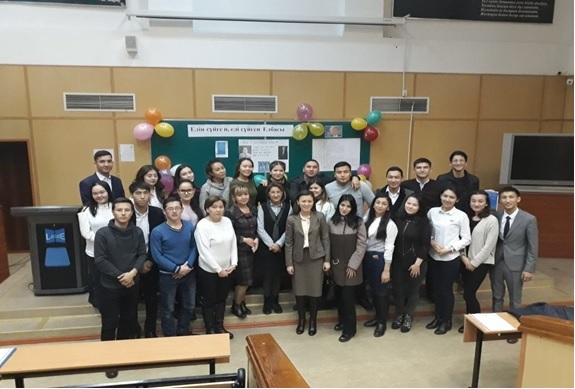 The faculty of physics and technology, the department of "Thermophysics and Technical Physics" and the students of the 3rd and 4th year of the specialty "Standardization, certification and metrology (by industry)" held an open event on November 30, 2017 for the Day of the First President on the topic " Елін сүйген, елі сүйген Елбасы ".
