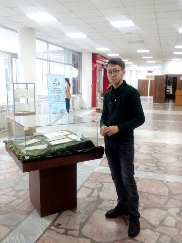 During the practical training within the framework of the «100 кітап» program, the 4th year student of the chair "Sociology and Social Work" Арғынбай Әбілқайырхан, оn February 23, 2018, the National Library of the Republic of Kazakhstan together with the Youth Council held an exhibition of religious books “Ислам өркениеті”.in the framework of the “Рухани жаңғыру” program.
