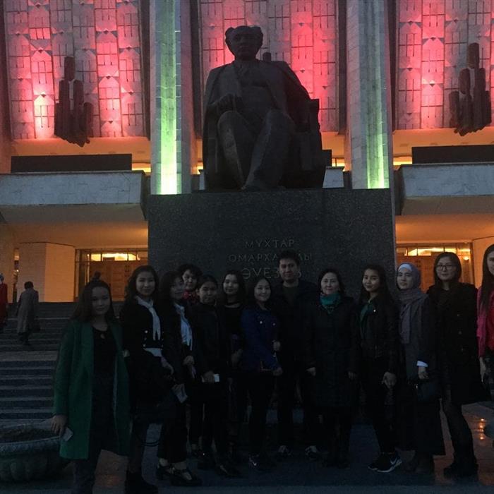 October 10, 2019 the curators- advisers of the Department of Chemical Physics and Materials Science together with their students visited the Kazakh State Academic Theater for Children and Youth named after G. Musrepov and watched their performance “Gabit” within the framework of the program “100 books”. The presentation was about the repression of 38 years of the Kazakh intelligentsia and excerpts from the works of Uncle Gabit. |
