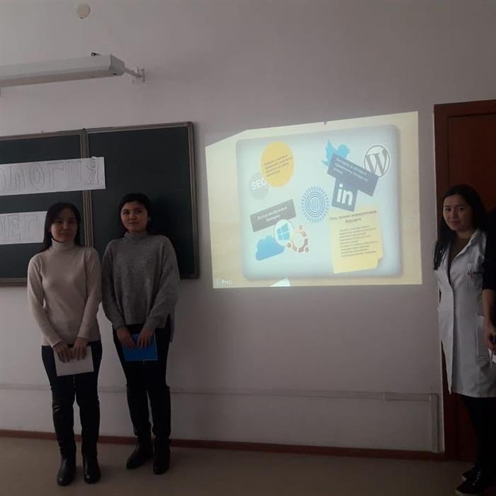 As part of the pedagogical practice, on December 6, 2019, the curator-adviser of the Department of Chemical Physics and Materials Science A. Omarova and second-year undergraduates of the specialty “Oil and Gas Business” organized an educational event on the theme: “Healthy lifestyle is the key to health”. |