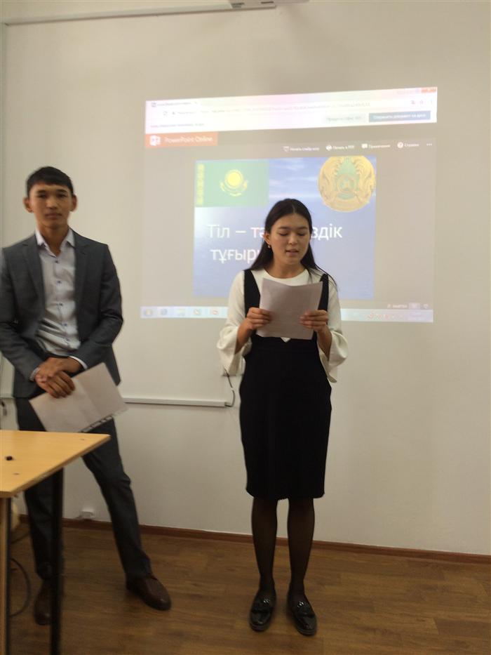 21At the 21-st of September 2017 year the Department of Philosophy held an event devoted to Day of languages of RK, which was the active participation of the students of all courses. Especially informative were the reports of students of the 1-st course Kusaynova Aknazik, Mirza Yernat, the 3-rd year students Mirzagulov Ramazan, Jarylkasyn Bekkali, the 4-th year students Meyrambekova Aiym and senior lecturer, PhD, who wons 4 languages Nazgul Kudaybergenova. |