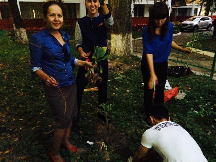 On September 9, 2015 within the Grinkampus project we showed an initiative and carried out the contribution to transformation of a site before an entrance to the hostel of faculty of philosophy and political science where there live our students. Involved in action of children, free from the ordinary affairs. Worked quickly, joyfully, anticipating to receive shortly (next year) the blossoming composition. To make landing of the blossoming plants to sunset - means to facilitate their sewing. Therefore worked in the evening - from 19.00 to 20.00 h. All derived pleasure from this short communication with the nature. We hope in the spring to see Latvians and peonies in full health on pleasure all! We want to invite also other chairs to participation in creation of the blossoming platform!