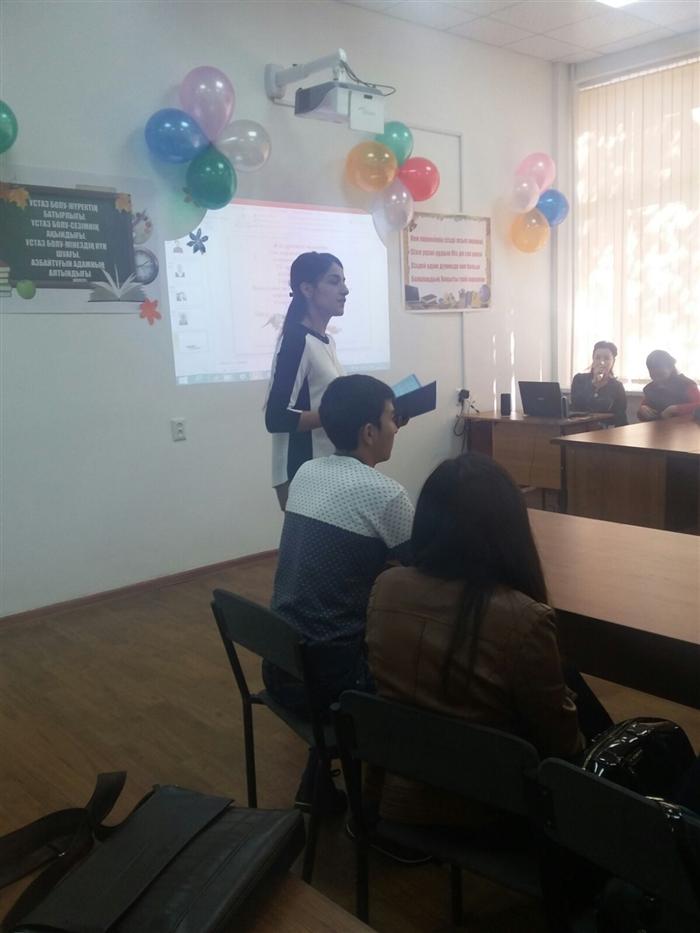In honor of celebration of day of teachers undergraduates of the 2nd course and students of the 1st course of specialty "Social pedagogics and self-knowledge" departments of pedagogics and educational management of faculty of philosophy and political science organized the concert program on "Ұстаз болу жүректің батырлығы" on October 8, 2015. All teachers of chair and teaching structure of profile school were invited. Were present and took part the manager of chair of Bulatbayeva A.A. and assistant manager of chair Arinova G. A., Zholtayeva K.Zh., Moldasan K.Sh., Shagyrbayeva M. D. and teacher of profile school Zulkapil D. Students of the 1st course and pupils of the 10th class of profile school took part. Undergraduates organized solid collaboration of all trained and made active public life on our chair.