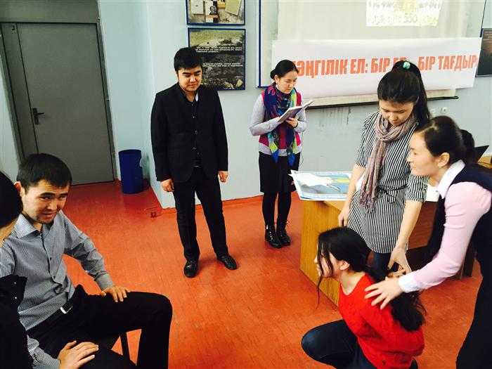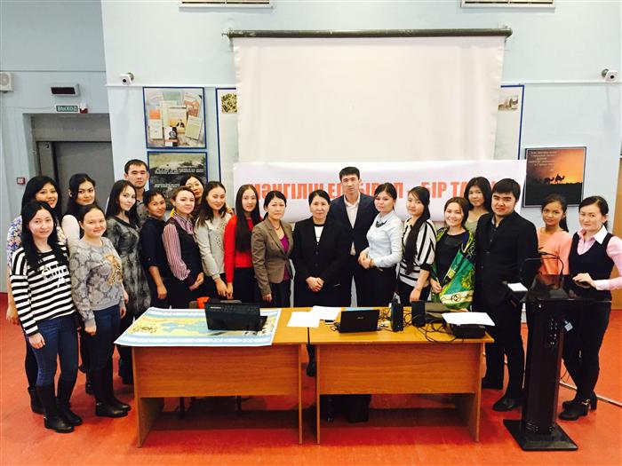 26.11. 2015. Undergraduates 2 courses of the specialty "Social Pedagogics and Self-cognition" of department of pedagogics and educational management of faculty of philosophy and political science held open educational event on a subject "Мәңгілік ел: бір ел-бір тағдыр".