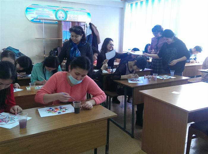 Technicians and receptions from art therapy, such as mandalas and zentangla, were offered for students. Drawing of mandalas and zentangla is very effective. During creation of a mandala, removal of tension and permission of the person's internal conflicts are observed. Participants were exchanging their impression, also they were creating mandalas and zentanglas under meditative music. The creative atmosphere reigned, all attendees liked these forms of art meditation, promoting acquisition of sincere harmony and removal of an emotional pressure.