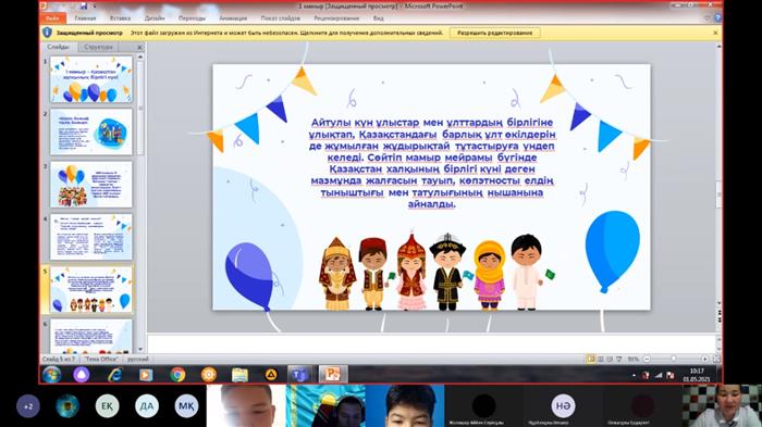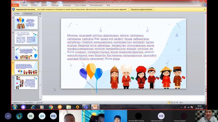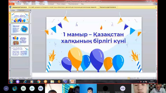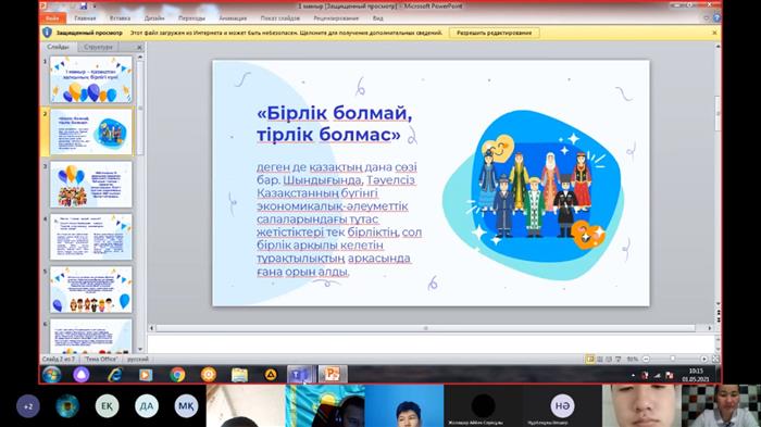 On 01.05.2021, at the Faculty of pre - university education, the event "May 1-day of unity of the people of Kazakhstan! E. B. Kenzhebayeva conducted an online curatorial lesson with the PC-101 group. The curatorial hour was attended by the dean of the faculty Zhappasov zh.E., deputy Amirkanov M. B., director of the college Nurkanova R. O., deputy Egeubayev A. A.