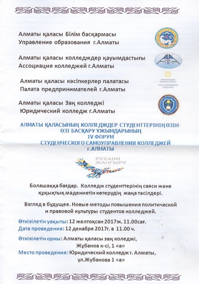12.12.2017 held 4th forum on self-government among college’s’ students in Almaty.