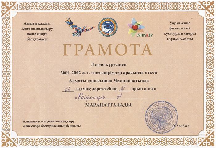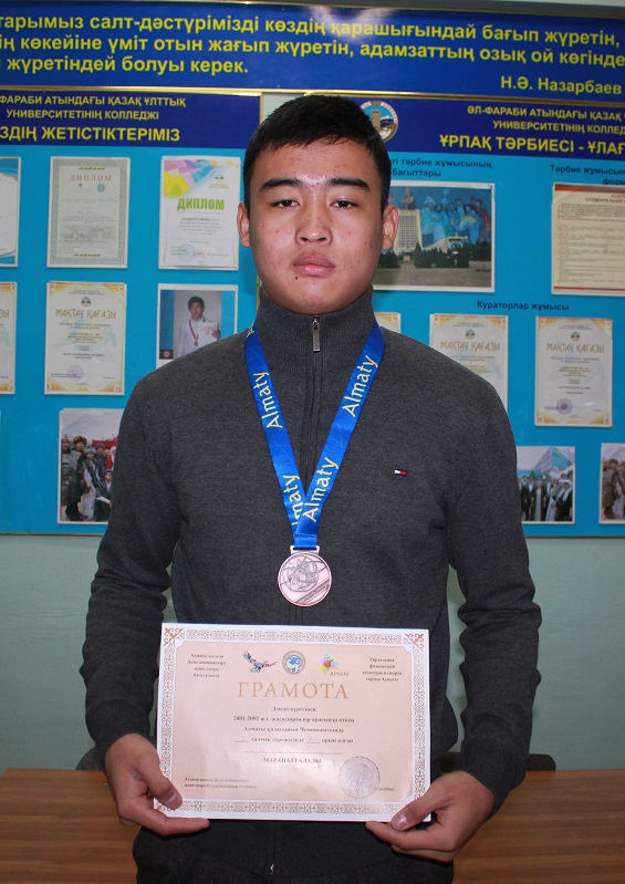 9.12.17 student of group PK-201 Қайратұлы Алмат took 3rd place in Judo championship which took place in Almaty.