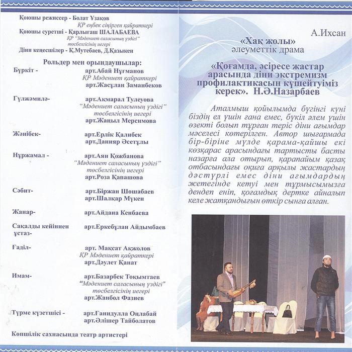 On April 10, 2018 College students visited the drama "the way of Truth", which was staged by students of Almaty regional drama theater named after Biken Rimova. Today, for our country, the issues of destructive religious movements are relevant for the whole world and not only in the play . The author in the play shows completely opposite points of view, the main struggle between the two main characters, taking into account the incidents of life through which the two heroes passed. The everyday life and outflow of young people in non-traditional religious movements in the Kazakh family is shown in this play.