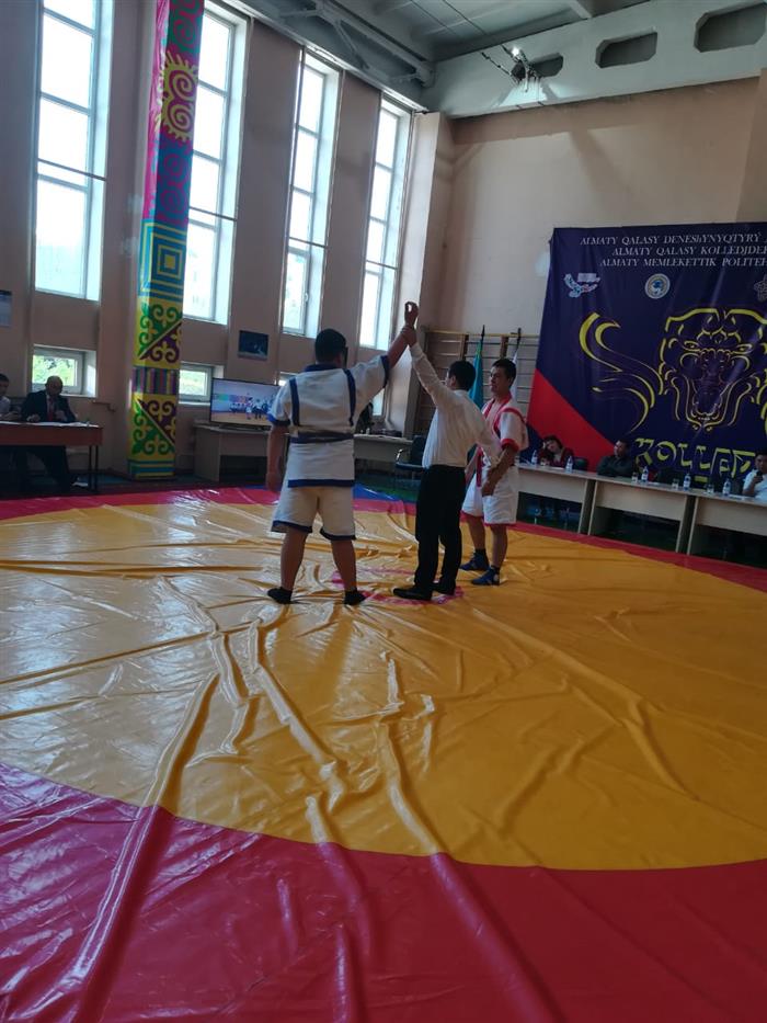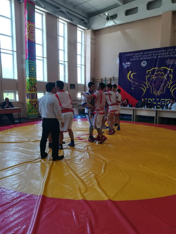 19.05.2018, under the auspices of the "Ruhani Zhangyry" held a competition in Kazakh wrestling among colleges of Almaty called "College Barysy". The competition was attended by college students such as: Raiymbek N., Almurad K. Akpanbek A., And Kairatuly A., Esenzhan K.