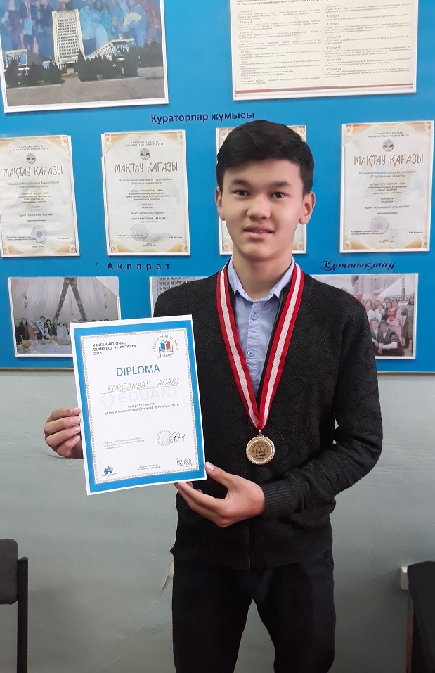 College student Korganbai Agabi became a laureate in mathematics in the X International Olympiad held in Antalya.