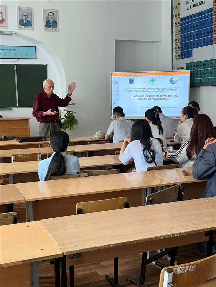 June 29, 2024, the leadership lecture was held at the West Kazakhstan University named after M. Utemisov by Doctor of Geographical Sciences, Professor Cherednichenko Vladimir Cherednichenko, the Department of Meteorology and Hydrology of the Al-Farabi Kazakh National University, on the theme: Dynamics of Climate Change.