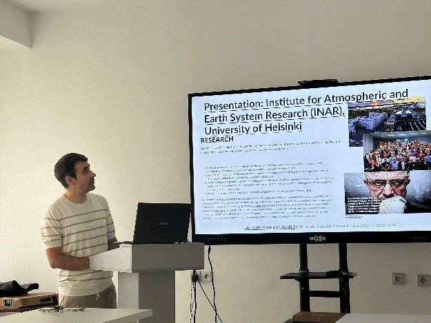 Within the framework of implementation of the megaproject under subprogramme 3: "To assess the atmospheric air quality of the West Kazakhstan region in the context of sustainable development" On 13 June 2024, Professor Giancarlo Ciarelli from the University of Helsinki (Finland) held a leadership lecture for teachers and students of the Department of Meteorology and Hydrology on "Modelling of aerosol particles over complex terrain". Professor Giancarlo Ciarelli in his presentation shared his knowledge and experience in the field of atmospheric pollutant modelling. He presented the results of modelling pollutant data and meteorological data.