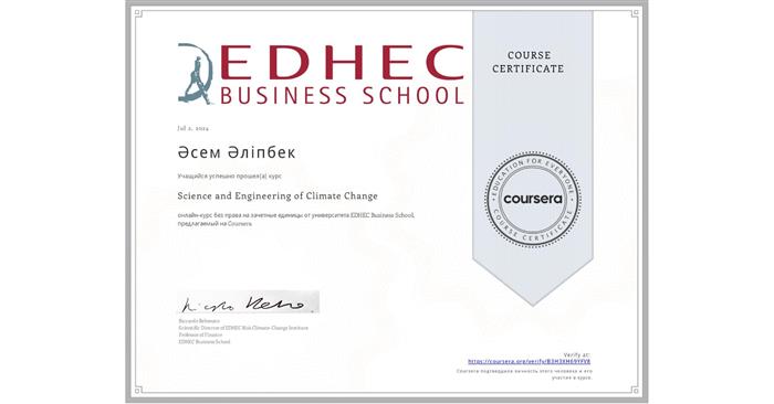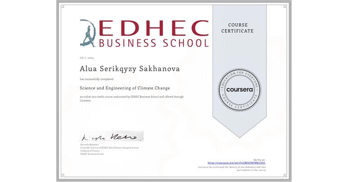 Global warming is one of the most important issues of our century. Also, 1st year undergraduates Alipbek Asem, Tursynbai Ayazhan and Sakhanova Alua took the Science and Engineering of Climate Change course. The course "Climate Change Science and Engineering" offers an introduction to the science of climate change and existing technologies to reduce its change. This course presented data on how scientists measure climate and its evolution, how climate models work and how greenhouse gases in the atmosphere play an important role in determining climate. The next module presents the main technologies that can be used to reduce carbon emissions and concentrations in the atmosphere, as well as explaining and working out how these technologies are better combined with each other, taking into account the facts indicated in the first part of the course.