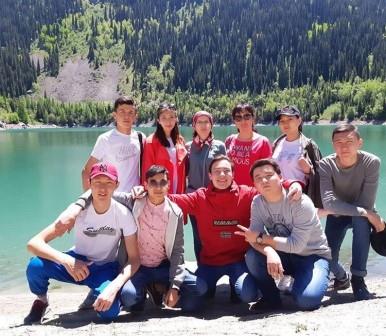 The Weekend students of the 1st year of special meteorology in the framework of the project “ Cult of healthy body ” went to the “Lake Issyk”. Lake Issyk - in the Issyk gorge is located on the territory of the Ile-Alatau state national natural Park. Height above sea level - 1756 meters. According to geologists, it was formed about 8-10 thousand years ago as a result of a grandiose mountain collapse, which created a natural dam with a height of about 300 meters. The most popular months of rest on Lake Issyk are July, August and September. However, many people come here all year round, because even in winter Issyk has a charming power. They say that the lake has a real character, its water constantly changes color depending on the weather. When the sky frowns, and the lake turns gray, and under the bright sunlight the water becomes blue, turquoise or green, and look at this quiet beauty can be infinite. Students looked at the colorful nature of the lake, made memorable photos and videos. Students on nature very liked and gave them a good motivation.
