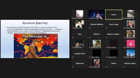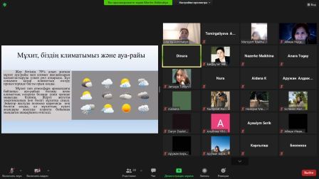 At the end of the open lesson, an online conference was organized on the "ZOOM" platform, where the history of the World Meteorologist's Day was told, what participation the Kazakh side takes in the convention of the World Meteorological Organization, and an intellectual quiz was held among students.