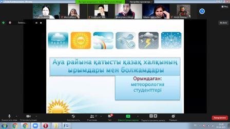 Within the framework of the conference "Farabi Alemi" on April 7, 2021, students of the Department of Meteorology and Hydrology organized an online meeting of the circle on the topic "Folk omens about the weather."