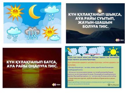 Nomadic Kazakhs from ancient times predicted the weather based on various natural phenomena and established their economy according to these forecasts. By signs, they made their forecasts and gave names to some manifestations of the weather. Kazakhs watched the movement of heavenly bodies. Constant movement in the endless steppes taught them to orient themselves well in the cardinal points, to find their way by the stars, to accurately determine the location of tracts, wells, pastures.