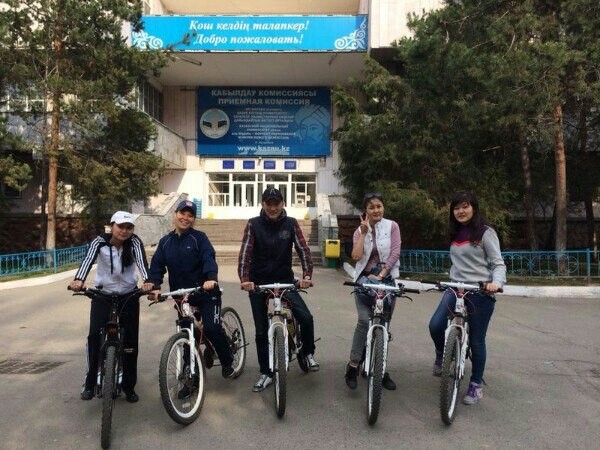 As part of the project "Cult of a healthy body", teachers of the faculty of law, together with students of the 3rd year of the faculty of law, organized a Bicycle cross at the intersection of Abay-Gagarin streets. The purpose of this event is to familiarize undergraduates with the sights of the city, instill a healthy lifestyle.This Bicycle crane was very much liked by undergraduates, and the event organized within the framework of this project had a positive impact on undergraduates.