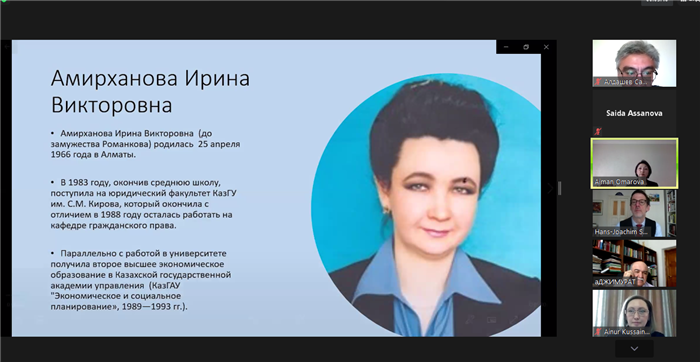 On April 23, 2021, an online international scientific and practical conference was held on the topic: "Problems of legal support of entrepreneurship in the digital economy", dedicated to the memory of doctor of law, Amirkhanova Irina Viktorovna, organized by the Department of Civil Law and Civil Procedure, Labor Law of the Law Faculty of the Al-Farabi Kazakh National University and the Research Center "Legal Support for the Innovative Development of Kazakhstan".