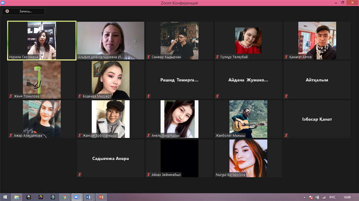 10/30/2020As part of the student scientific circle, on October 30, 2020, an online lecture was held - a conversation with the senior researcher of the museum D.A. Kunaeva N.S. Zhusipbaeva. During the lecture-conversation, the students of museology had questions about working with the funds of the museum, replenishing the funds, storage modes, etc. N.S. Zhusipbayeva described in detail the procedure for replenishing the museum funds and the working process in the funds. Future museum experts were active, which was reflected in the online meeting in a positive way for all parties! The participants of the student circle listened with hope to the practicing specialist in museums N. S. Zhusipbaev.