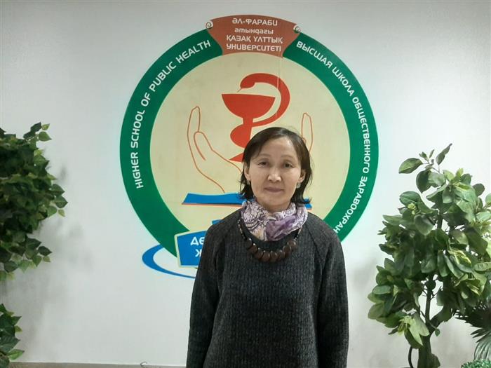 Scientific works (their sphere): Author of 6 manuals in the field of jurisprudence, has more than 50 scientific papers, including articles published in national and international publications on various issues of jurisprudence, medical law and public health. Actions, awards: - Honorary Certificate of the World Intellectual Property Organization (WIPO) for participation in the WIPO Summer School in St. Petersburg (2012) - Honorary Diploma of the Committee on Intellectual Property Rights of the Ministry of Justice of the Republic of Kazakhstan (2012) - Certificate of Honor of the Russian State Academy of Intellectual Property (Moscow) for organizing and conducting the Kazakhstan Olympiad of schoolchildren on intellectual property problems, Astana, 2014. - Certificate of Honor of the Petrovsky Academy of Sciences and Arts of the Russian Federation (St. Petersburg, 2015). Certified advanced training courses: Since November 2016 she has been conducting trainings for heads of medical organizations, their deputies, lawyers of medical organizations, nurses on the following topics: "Legal risks in the activities of medical organizations"; "Legal protection of doctors and medical organizations"; "Legal Regulation of Nursing Activity in the Republic of Kazakhstan"; "Analysis of law enforcement practice on bringing to justice of medical organizations and their officials for improper execution of medical documentation".