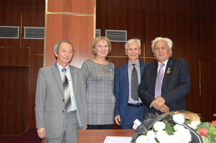 At 14.00 p.m November 14, 2017 in the red hall Department of Differential Equations and Control Theory of the Faculty of Mechanics and Mathematics of the Al-Farabi Kazakh National University held an extended meeting of the department dedicated to the 75th anniversary of the Honored Worker of the Republic of Kazakhstan SA Aysagaliev. The meeting was opened by Dean of the Faculty Zhakebayev Dauren Bakytbekuly. In his speech, the dean spoke about the scientific, pedagogical and public activities of the Honored Scientist of the Republic of Kazakhstan, academician of the Higher School and the International Informatization Academy Serikbai Aisagaliyev and congratulated the jubilee on behalf of the faculty and offered a congratulatory speech of the rector of the University of the academician of NAS RK Galymkair Mutanovich Mutanov. The rector handed Serikbay Abygalyevich Aisagaliyev "the gold medal of Al-Farabi" and expressed gratitude to the jubilee. Then, with welcome speeches were made by professors Jenaliev MT, Suleimenov Zh., Murzabekov ZN, Serovajsky S.Ya., Tukeyev U.A. At the end of the meeting, the winners of the Olympics dedicated to the 75th anniversary of the Honored Worker of the Republic of Kazakhstan SA Aysagaliyev were awarded diplomas and prizes.