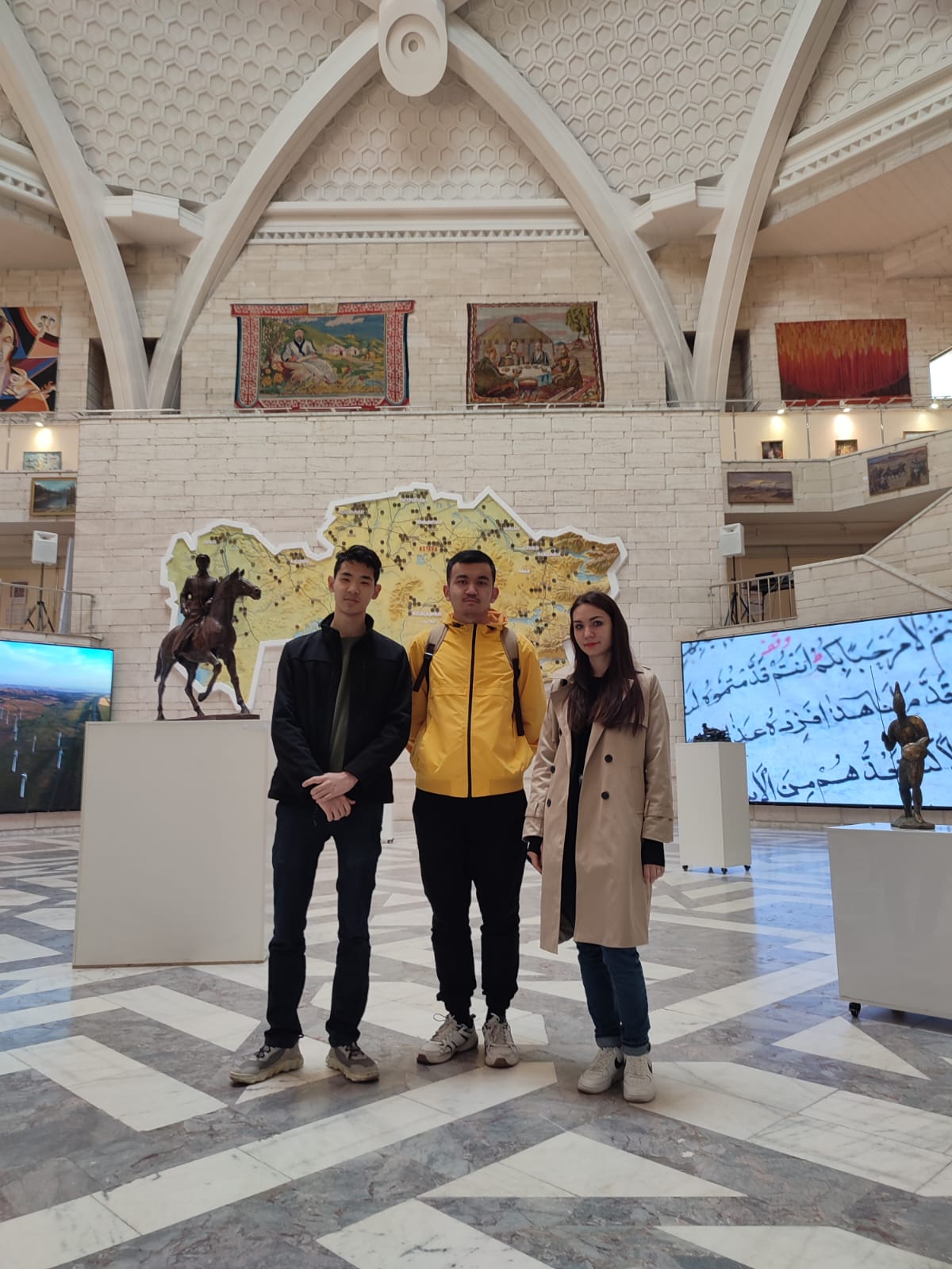 3/25/2023On Saturday 25.03.2023, as part of teaching practice, an outreach event was held with 3rd year students at the Central State Museum. The Central State Museum of the Republic of Kazakhstan is one of the oldest and largest museums not only in Kazakhstan, but in the entire Central Asian region. Here, in stock collections, there are about 300 thousand units of storage. We were able to see the hall of paleontology and archeology, the hall of historical ethnography, the hall of "diaspora culture", the hall "Kazakhstan during the Great Patriotic War", and the hall "Modern Kazakhstan". Thus, we got the opportunity to get acquainted with the material culture of the Kazakh people, to immerse ourselves in the specifics of the cultures of the peoples living in Kazakhstan, to see with our own eyes the work of applied art of the Usuns - the Kargaly diadem.